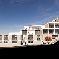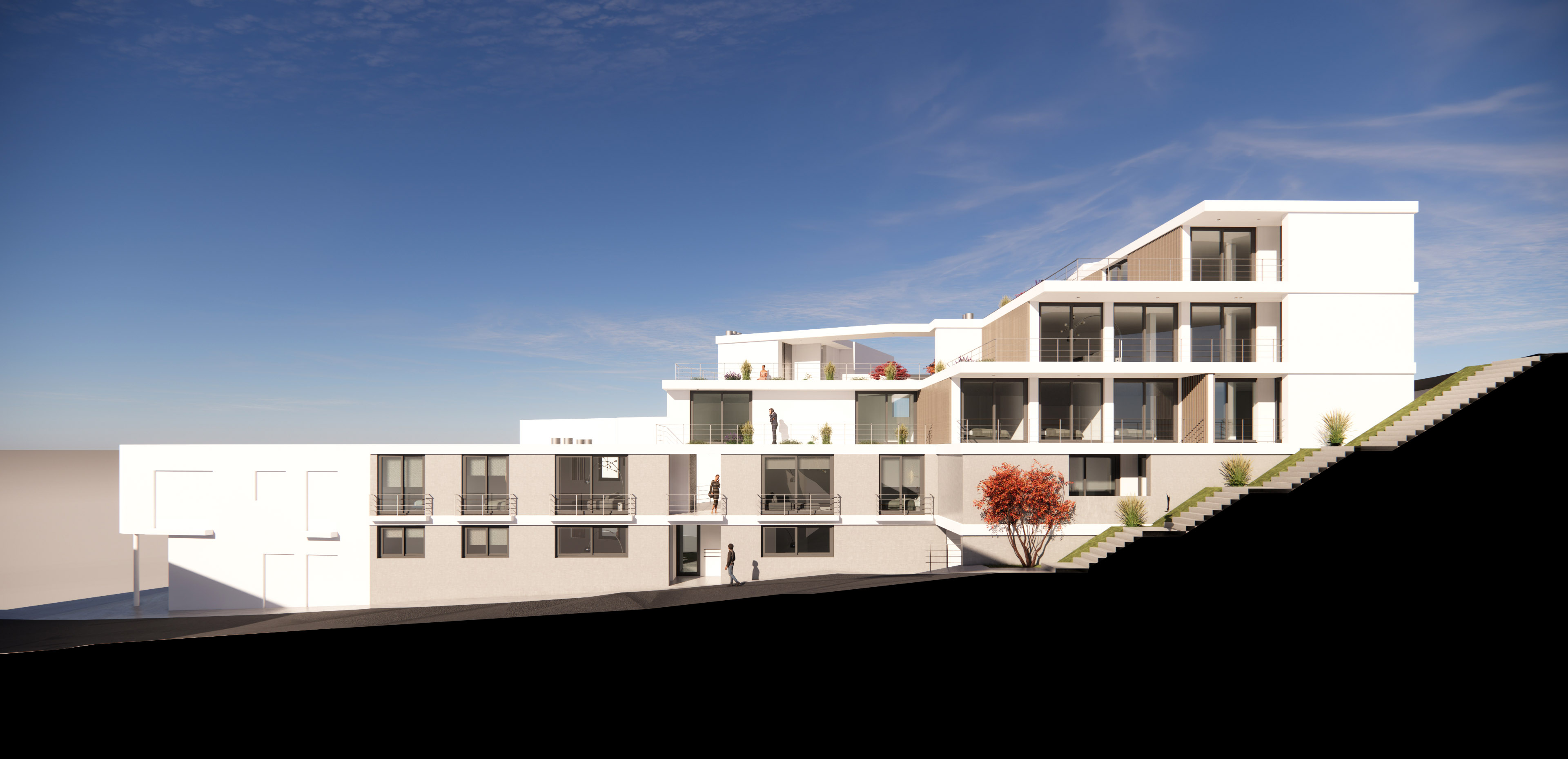 Implantado a norte da colina do castelo de Leiria, este complexo residencial está cercado por uma densa vegetação, telhados tradicionais e pelas torres do castelo a norte.